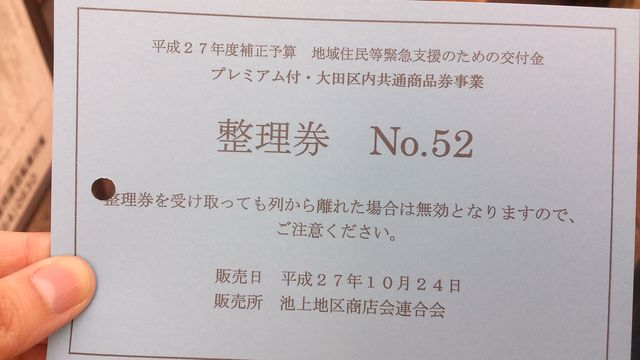 本日は、早速「大田区のプレミアム商品券」で