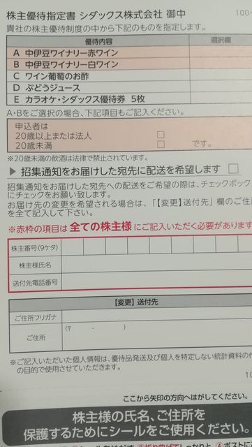 シダックスの優待案内が到着しています。