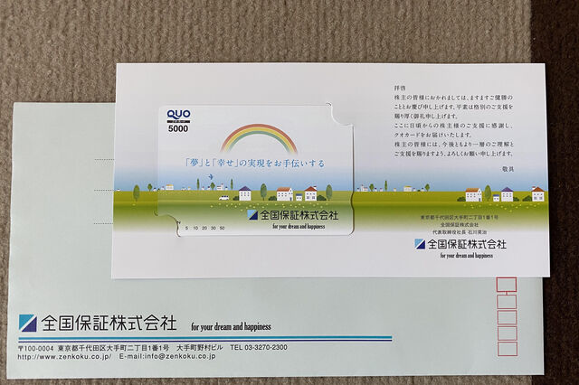 1年以上継続保有 5000円相当クオカードまたはカタログ
