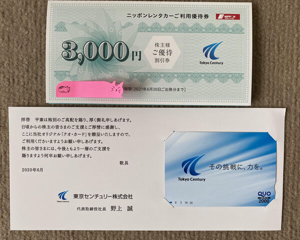 2000円クオカード&3000円相当のニッポンレンタカー利用割引券
