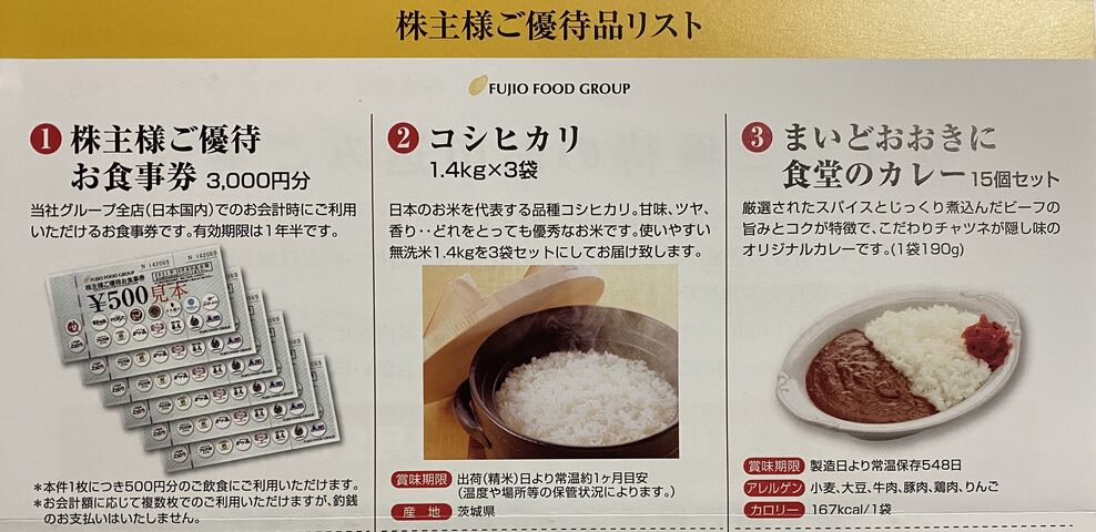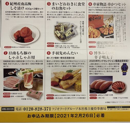 12月権利、フジオフードから優待品の案内が届きました