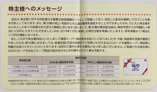そうそう、昨日悩んでいた神戸物産は、クオカードを返送しました。