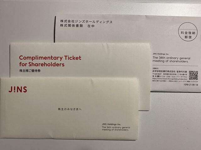 8月権利 ジンズHD(3046)の優待が届いています。