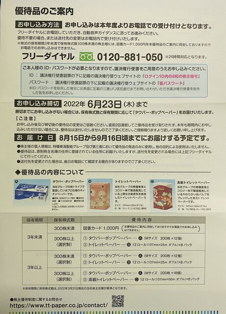 ちょうど3年保有で、優待ランクが5000円に昇格しました。
