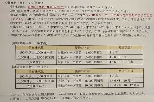 優待到着