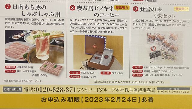 10月権利 フジオフード(2752)の優待案内が届きました。