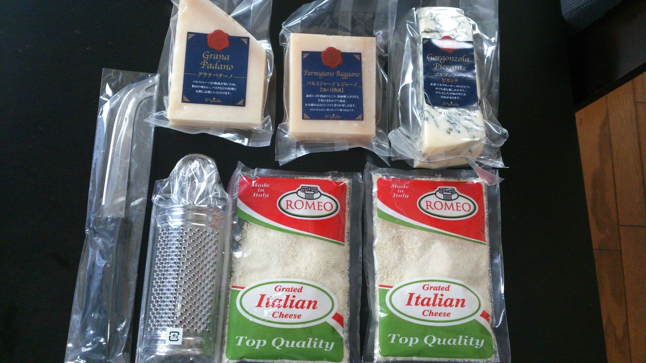 固形のチーズを削ってパスタにかけるっ!