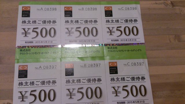 5/31までの優待券が2つありました。