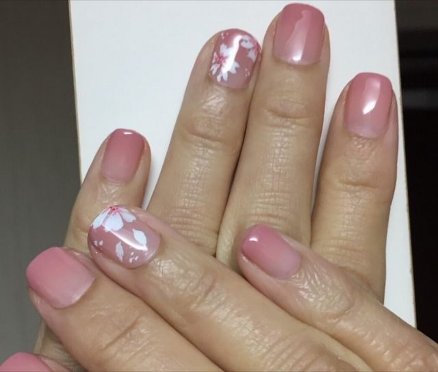ベージュピンクのグラデーションに、桜を筆で描いてもらいました