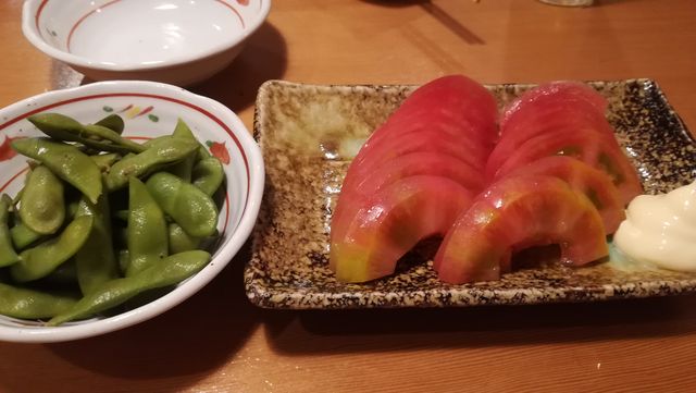 トマトの切り方が美しい。枝豆も美味しい。