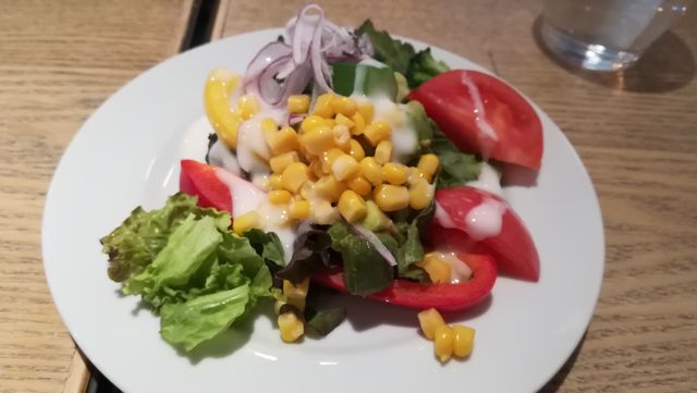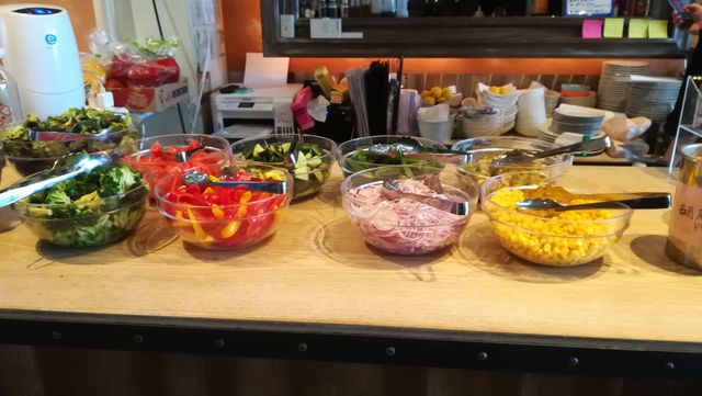 黒板にもある通り、1000円でサラダビュッフェ付きです。