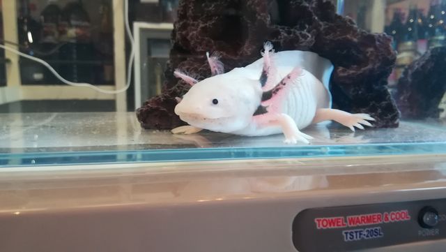 置物かと思ったら、本物のウーパールーパーちゃんが居ました