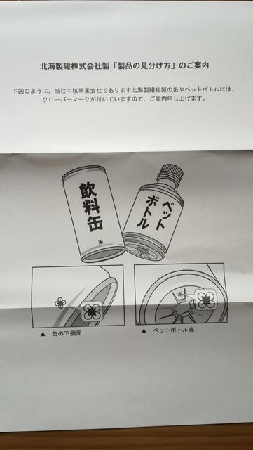 この紙は何? と読んでみると、北海製罐社製の製品には