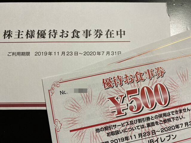 なんとその日に優待券が届きました