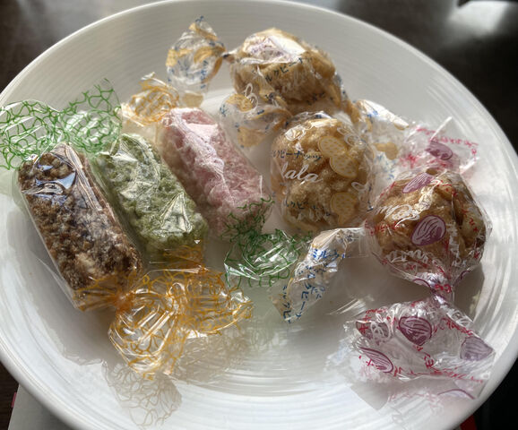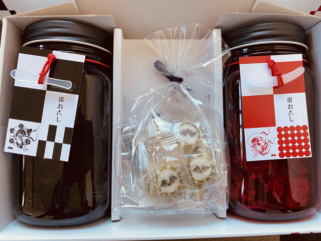 オリジナルボトルに入った、雷おこしと、竹本飴(抹茶)だそうです。