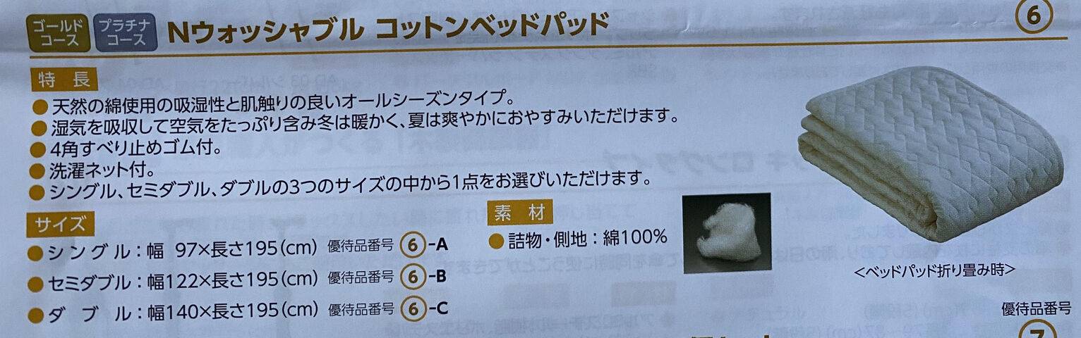以前、ベッドパッドをいただきました。品物が良く長持ちしています。