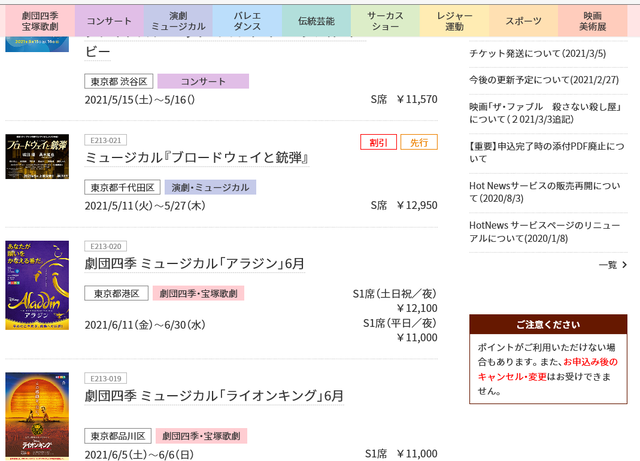 ◆エンタメチケット 劇団四季のアラジン観たい!