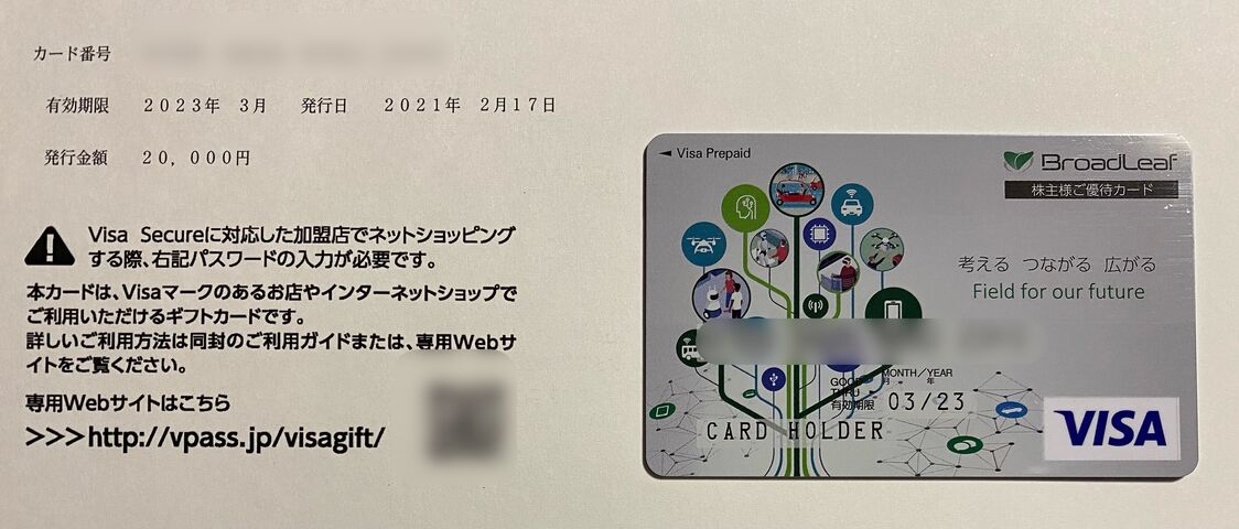 12月権利 ブロードリーフ(3673)からギフトカードをいただきました。