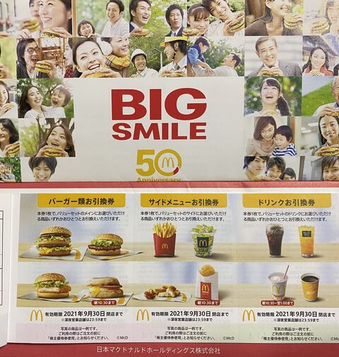 そして、ちょうど先日、マクドナルドの優待券が届きました。