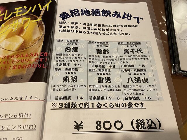 6種飲み比べにしました。好みの順位①八海山 ②魚沼 ③高千代