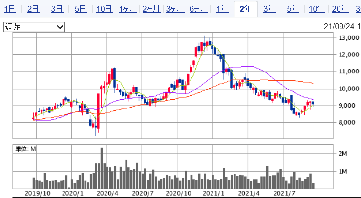 株価は9110円(2021/9/24終値)