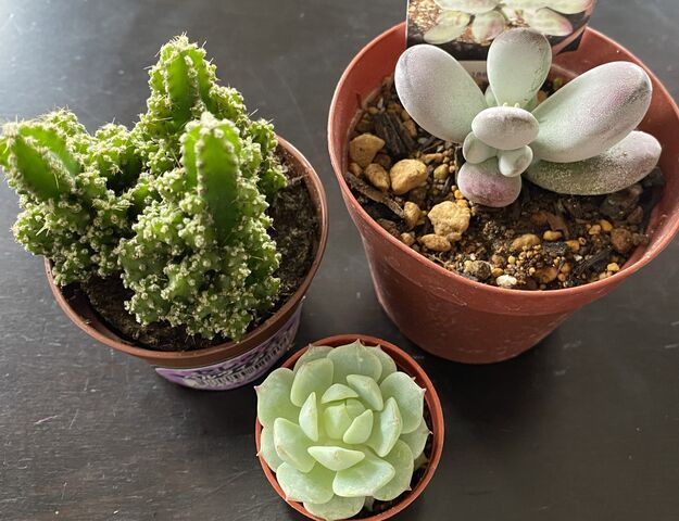左上)ぴよちゃんのサボテン 右上)ふっくら娘(コチレドン属)
