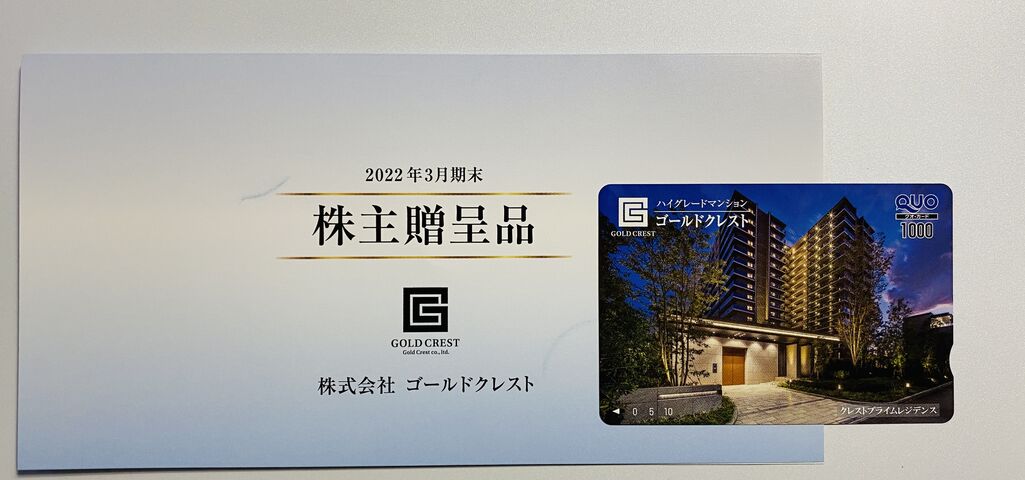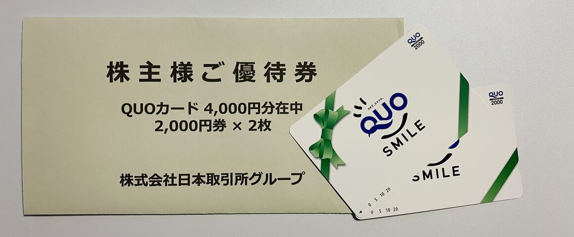 3月権利 日本取引所グループ(8697)より、優待のクオカードが届きました。