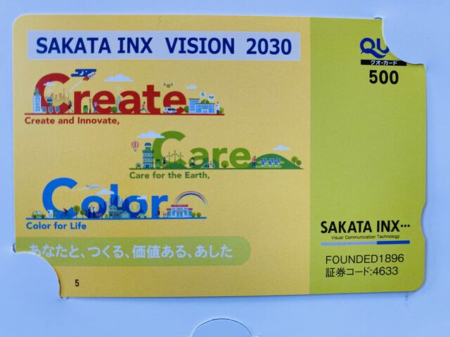 サカタインクス(4633) 12月権利 100株500円のクオカード。
